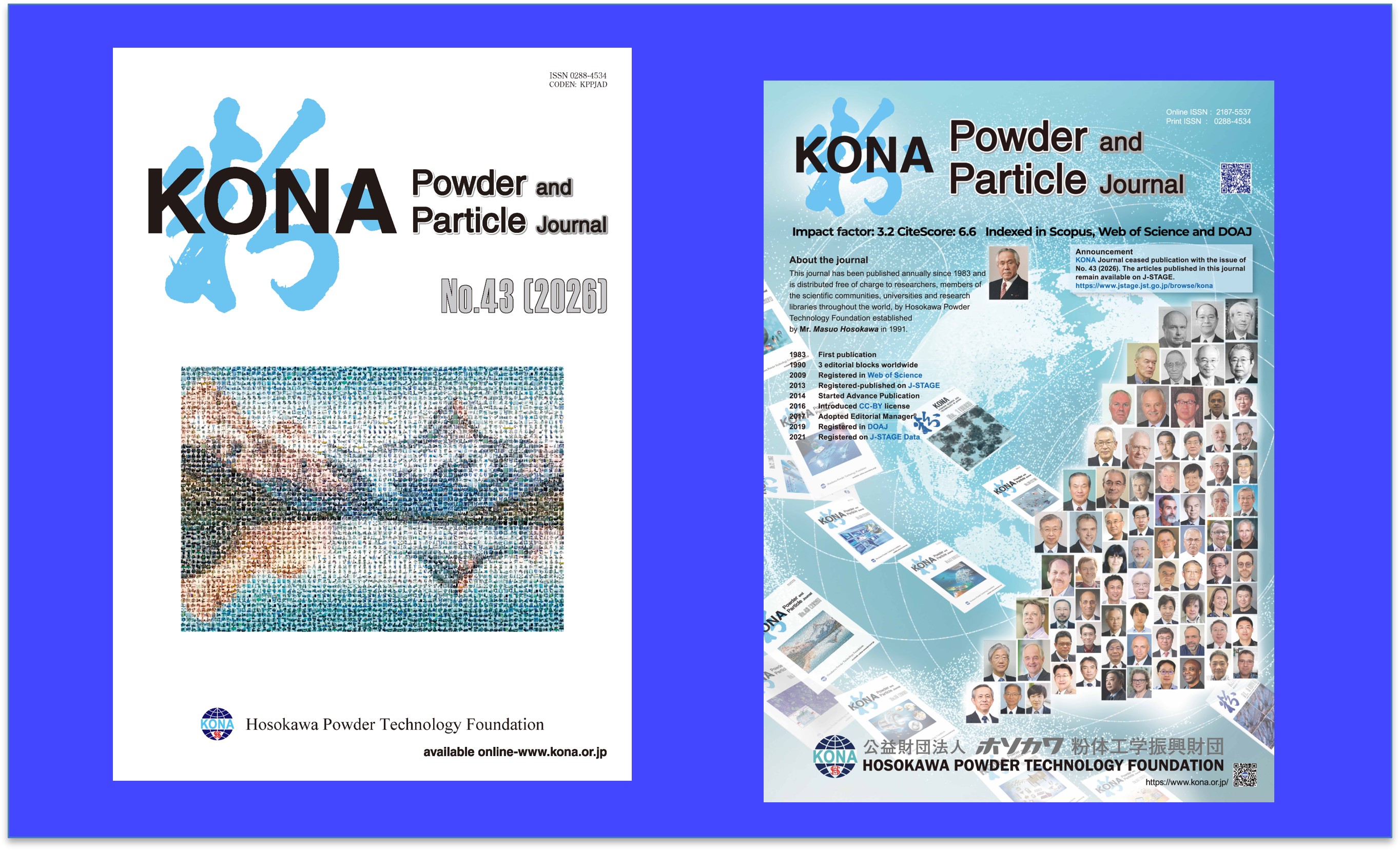 KONA Powder and Particle Journal ceased publication with Issue No. 43 (2026). Submissions closed at the end of 2024. All articles published in the journal remain accessible on J-STAGE <https://www.jstage.jst.go.jp/browse/kona>.